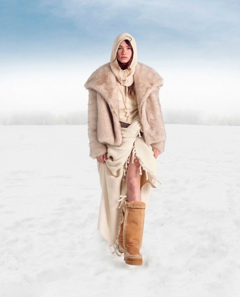 ”I have a survivalist approach where keeping warm is concerned. I love natural fibres and prefer to wear things that are non man-made. Many people do not realize the false perception of ’faux’ fur – in truth it is non ethical, as it is not bio-degradable and made from non-renewable fossil resources. The sheepskins we use are by-products from the meat and dairy industries. I am aware that there are many unsavoury practices still evident in the fur industries and we are vigilant to ensure that our suppliers share our ethical standards.” – Mrs Shelley Tichbourne – Founder and Creative Director of MOU